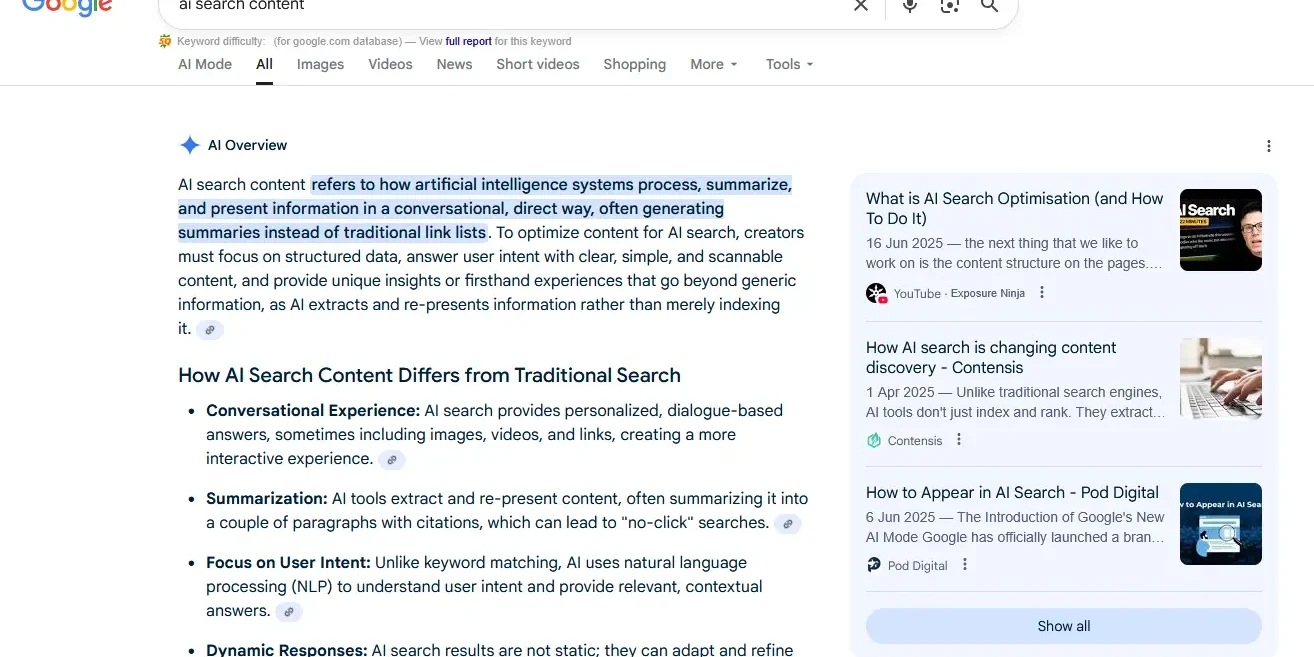 The world of search engines and search results is changing with the advent of search results. Many of us have used AI search already as commonly searched for terms usually bring up results in the following order: